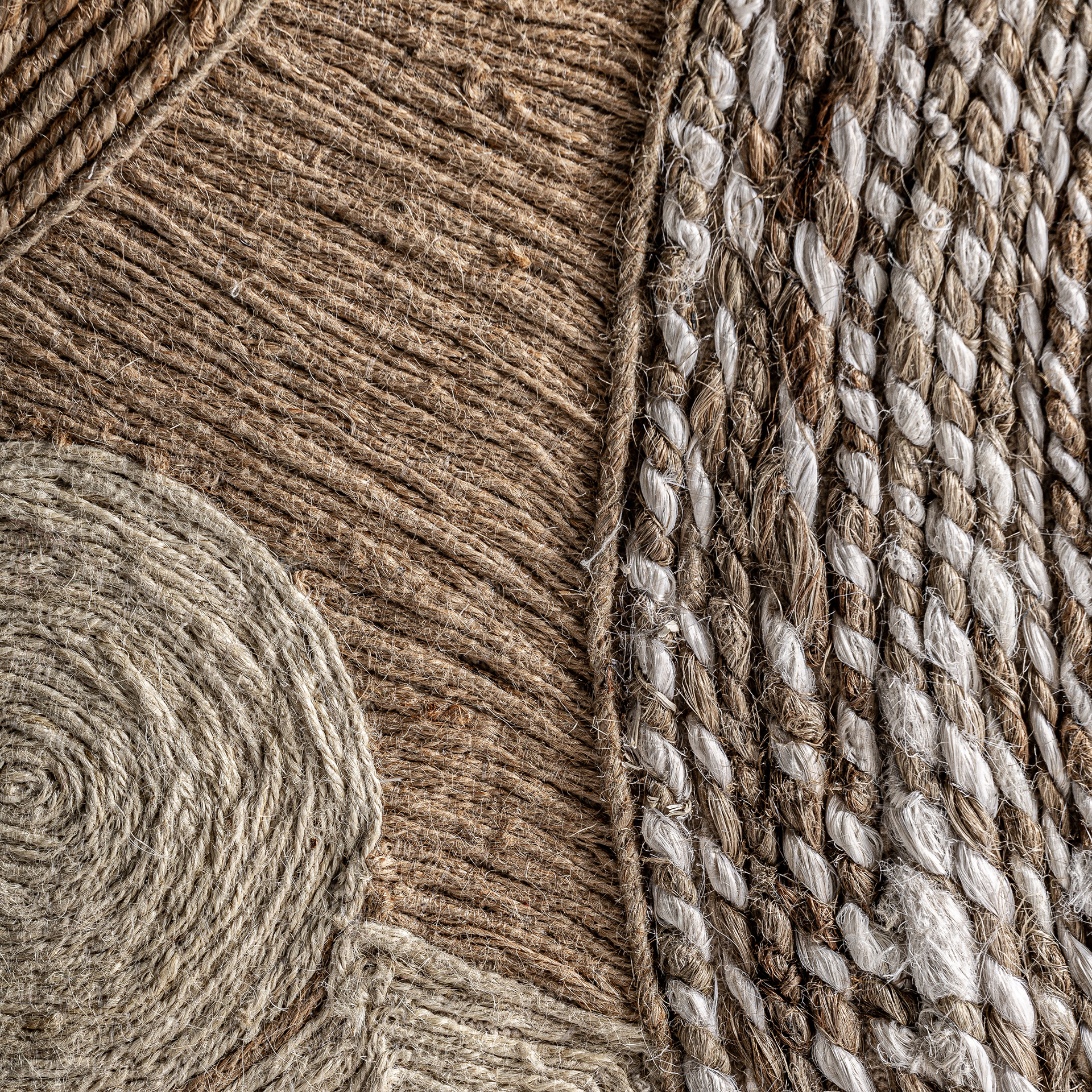 Arte textil de espíritu boho. El cuadro Zeus está realizado en madera de mango y decorado con cáñamo yute y tonos neutros. Un equilibrio de formas orgánicas y texturas que convierte cualquier pared en una expresión de calma estética.