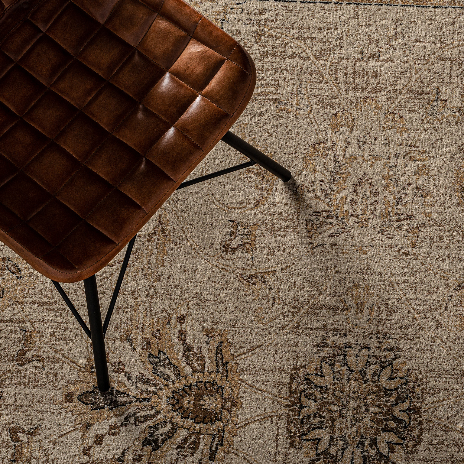 La alfombra Anka, en viscosa marrón, destaca por su diseño clásico y textura suave. Una pieza de VICAL que aporta calidez y elegancia al suelo.
