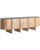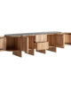 El Aparador Nara de VICALDESIGN, diseñado por Francesc Rifé, destaca por su lenguaje depurado y su equilibrio formal. La combinación de madera de roble en tono marrón claro y mármol negro aporta contraste y sobriedad, dando lugar a una pieza funcional y elegante, pensada para ordenar el espacio con discreción y carácter arquitectónico.