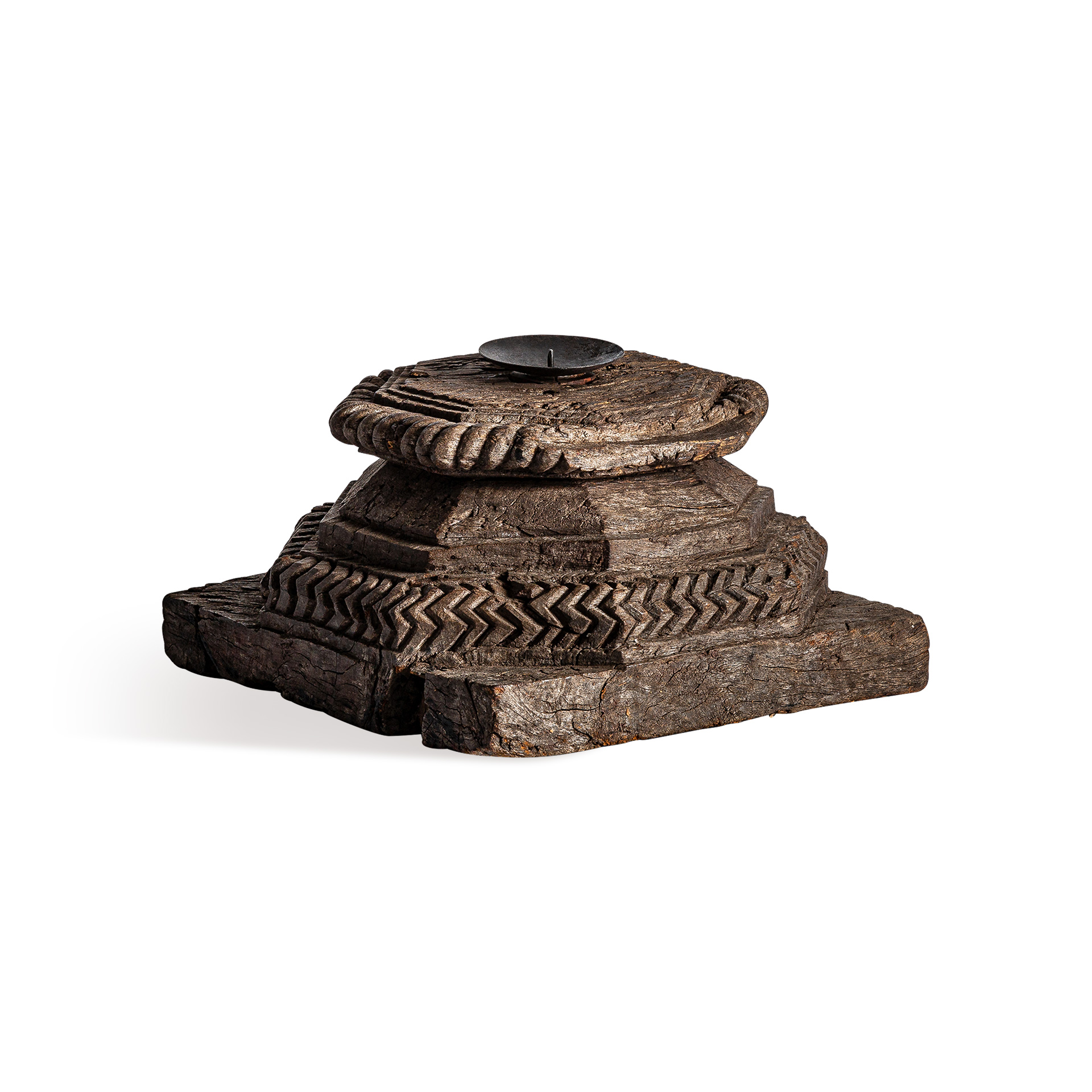 El portavelas Wajir, en madera de mango reciclada con acabado envejecido, destaca por su estética étnica y carácter sostenible. Una pieza de VICAL que aporta autenticidad y calidez.