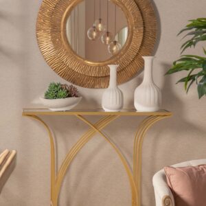 CONSOLA METAL ESPEJO DORADA 104x30x79 CM