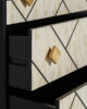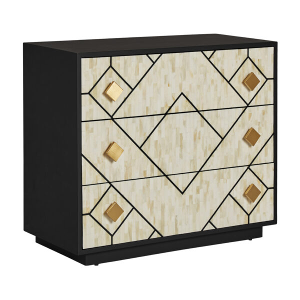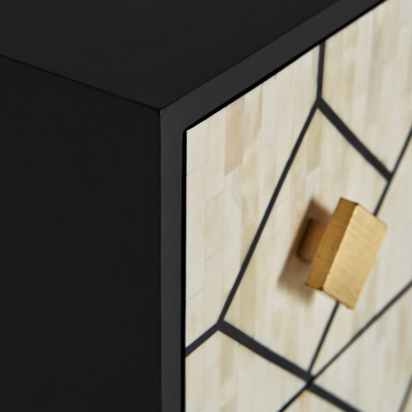 Incorpora un toque de sofisticación con la Cómoda Charmes de VICAL home. Confeccionada en madera y detallada en hueso su diseño tricolor en negro blanco y oro irradia lujo. Sus dimensiones de 90x42x77cm permiten un almacenamiento óptimo. Charmes se destaca no solo por su funcionalidad sino también como una pieza que aporta una estética refinada a cualquier espacio. Embellece tu hogar con la cómoda decoración hueso Charmes.