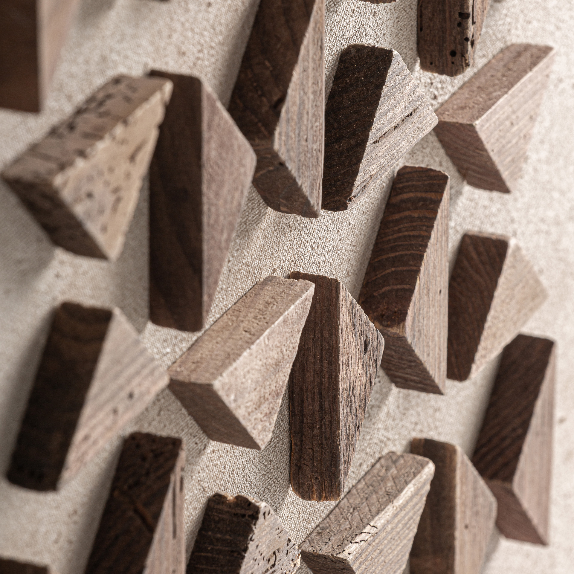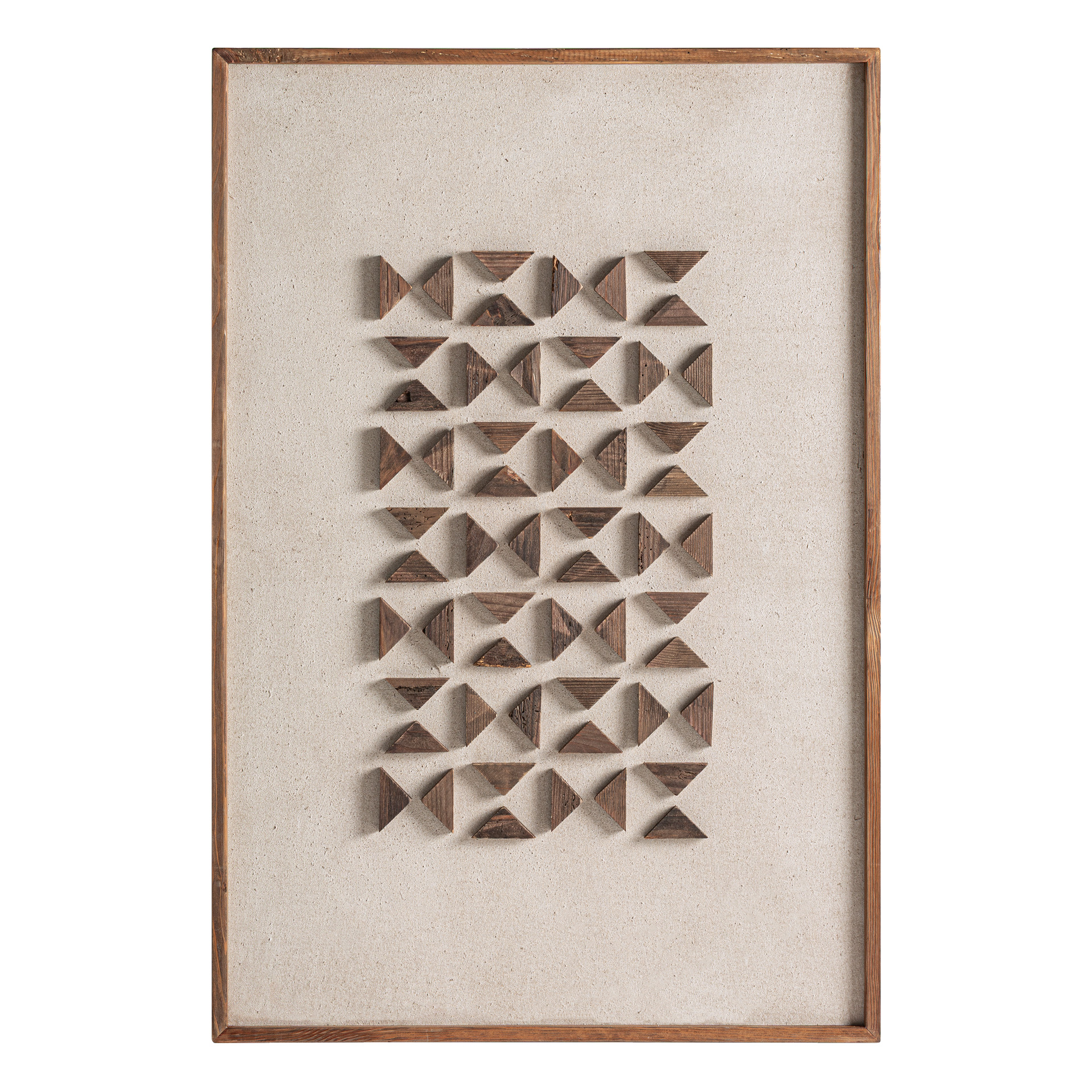 El Cuadro Akrin de VICAL es una celebración de la textura y el ritmo geométrico. Elaborado en madera de pino reciclado en tono marrón sobre fondo blanco roto, su composición aporta profundidad y un juego de luces y sombras que enriquece cualquier estancia. Akrin transmite autenticidad y sensibilidad artesanal, integrándose con naturalidad en interiores contemporáneos que buscan piezas con alma y equilibrio estético, sello distintivo de VICAL.