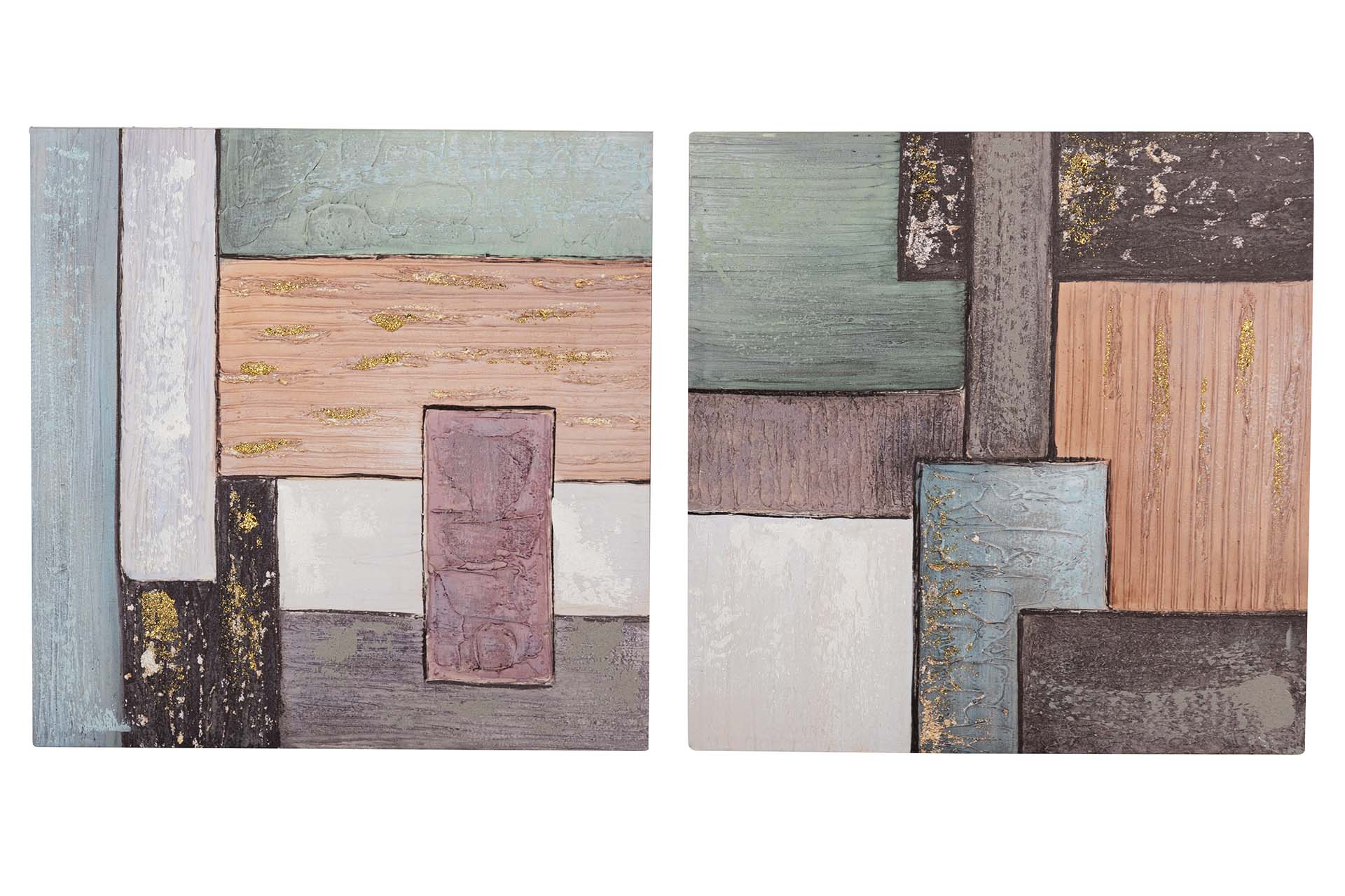 SET 2 LIENZOS ABSTR. 40% PINTADO MANO 60x3x60 CM