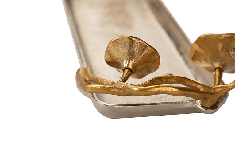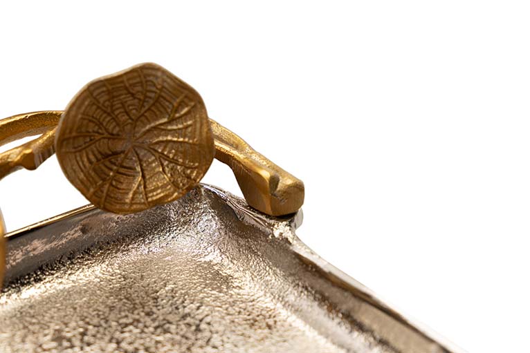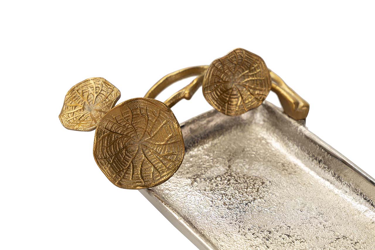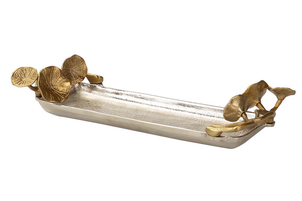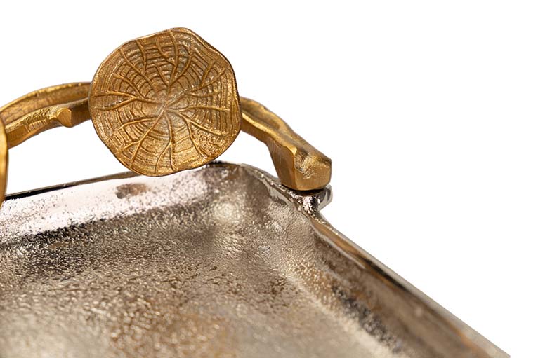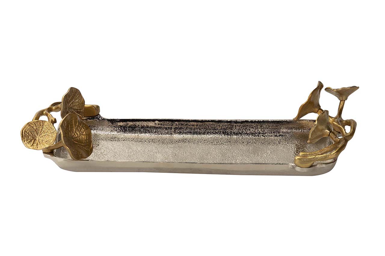 BANDEJA HOJAS ALUMINIO PLATEADO / DORADO 41x18x8CM