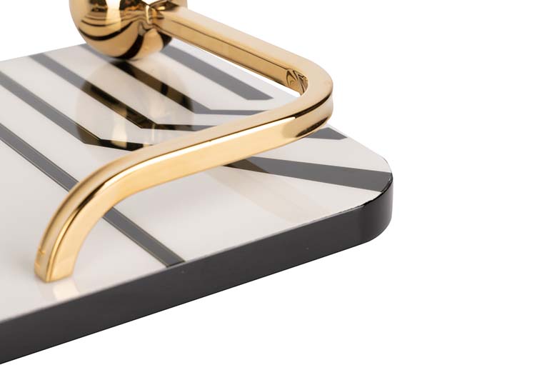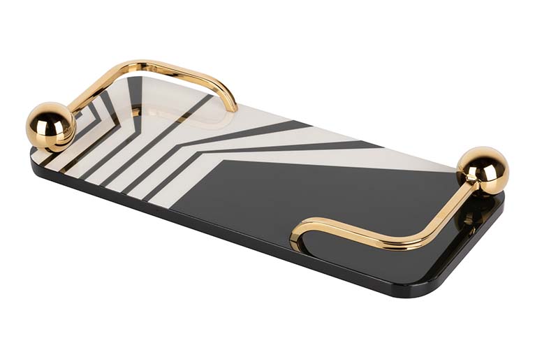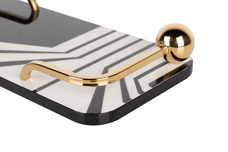 BANDEJA MDF/ACERO INOX. BLANCA NEGRA 45x20x7 CM
