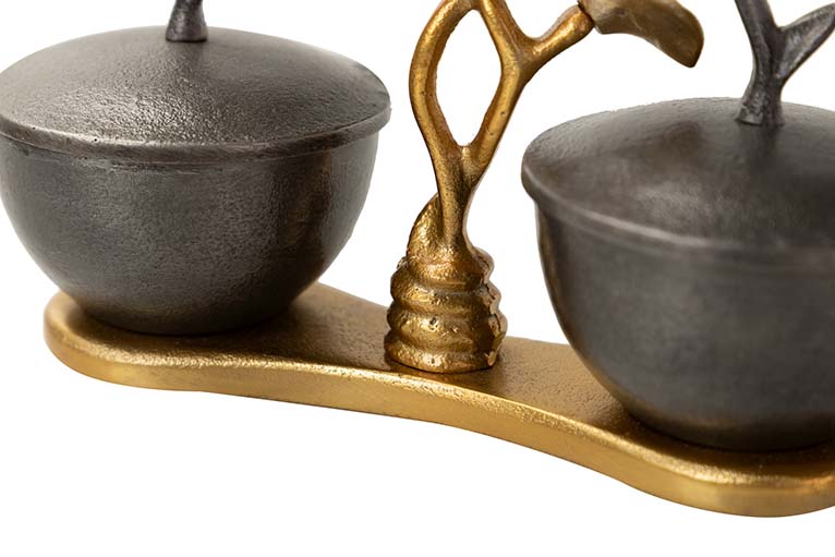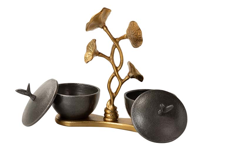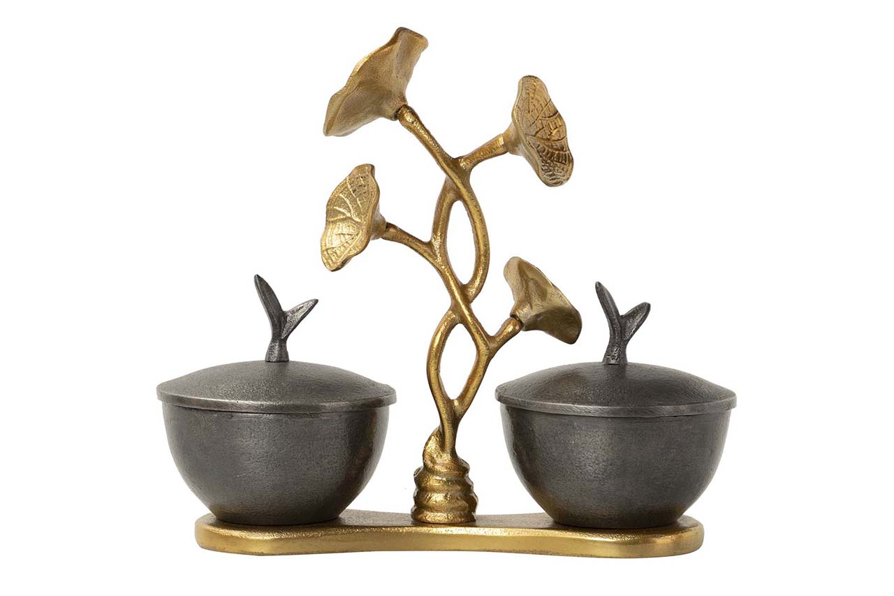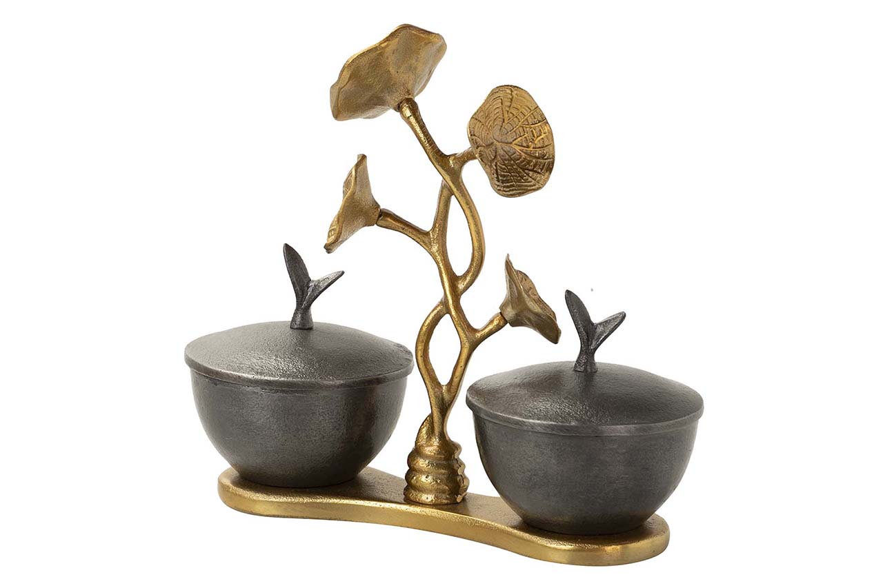 CENTRO DE MESA ALUMINIO NEGRO DORADO 21X11X24 CM