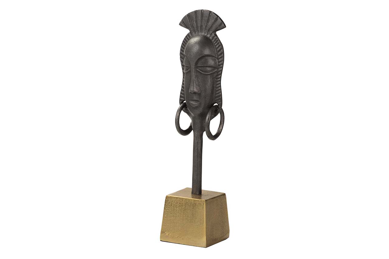 FIGURA CARA ALUMINIO NEGRO / DORADO 11x10x46 CM