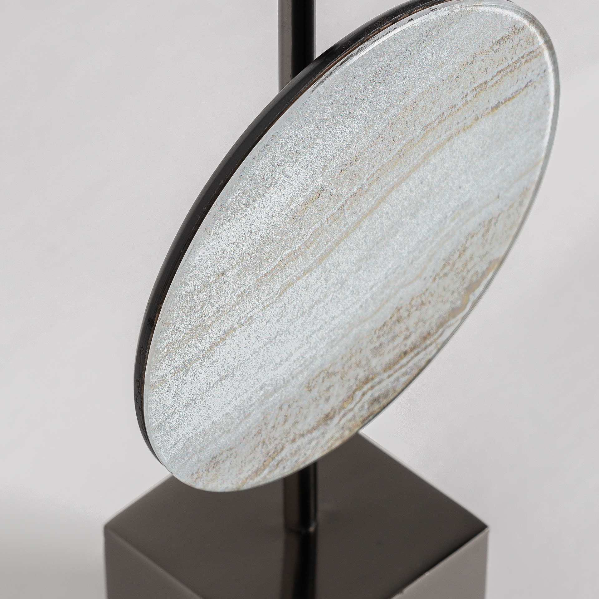 La figura decorativa Mab en níquel gris combinado con cristal destaca por su diseño art déco y su presencia escultórica. VICAL firma esta pieza con su sello inconfundible.