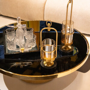 PORTAVELAS METAL CRISTAL NEGRO DORADO 13x13x42 CM