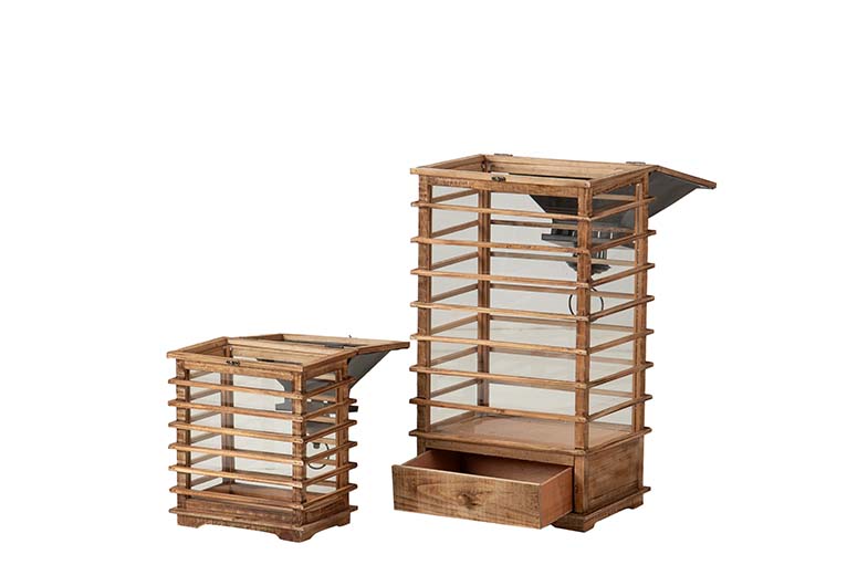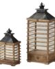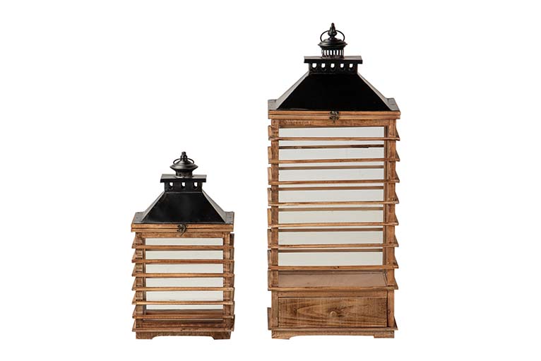 SET 2 FAROLES MADERA MARRON 37x27x88 29x19x53 CM