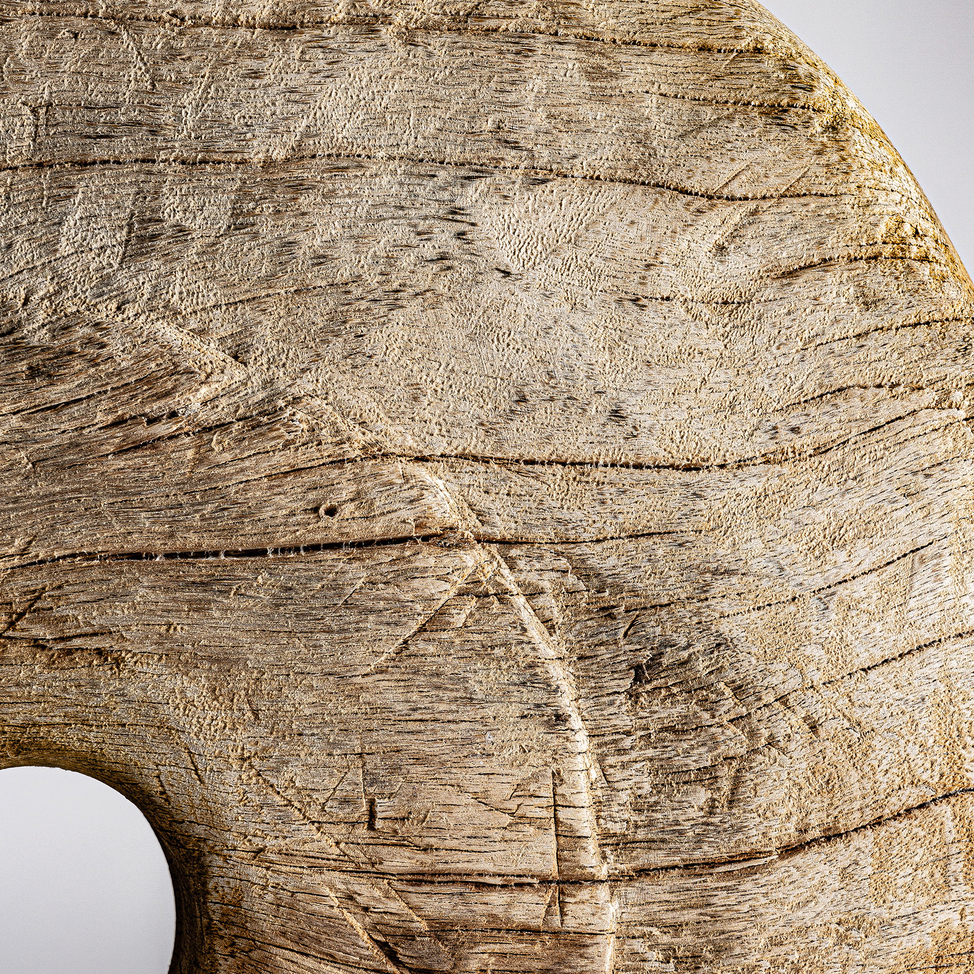 La figura decorativa, en madera de pino reciclado con acabado envejecido, destaca por su estructura vertical y su estética étnica. Una pieza de VICAL que aporta textura y autenticidad.