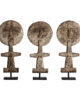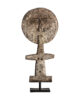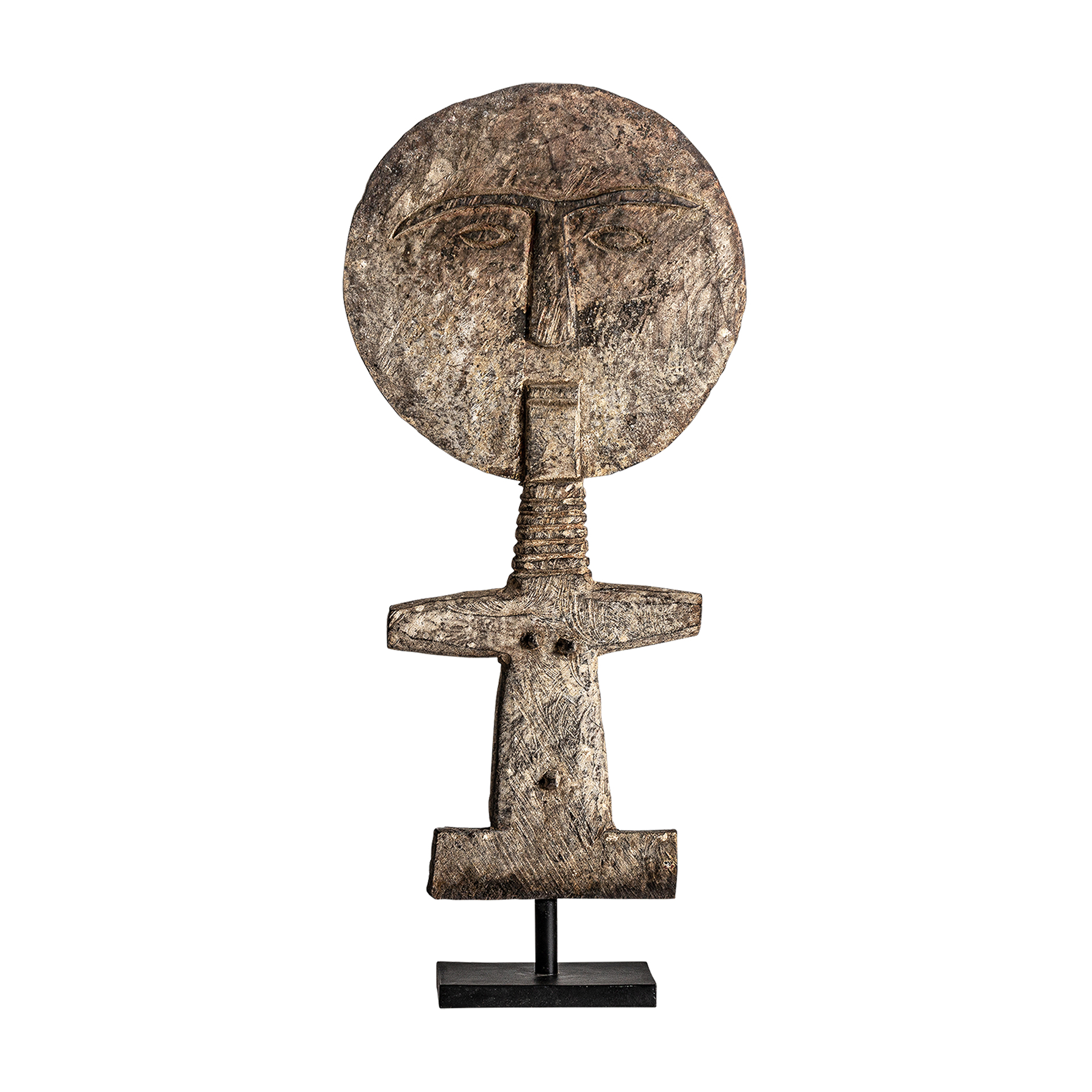 La figura decorativa en madera tropical destaca por su verticalidad y acabado artesanal. VICAL firma esta pieza con su sello inconfundible.