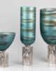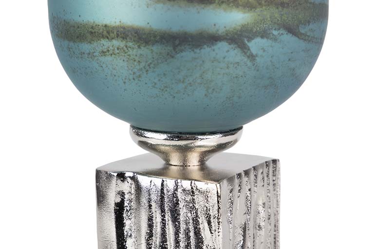 JARRON CRISTAL ALUMINIO AZUL NICKEL 16x16x58 CM