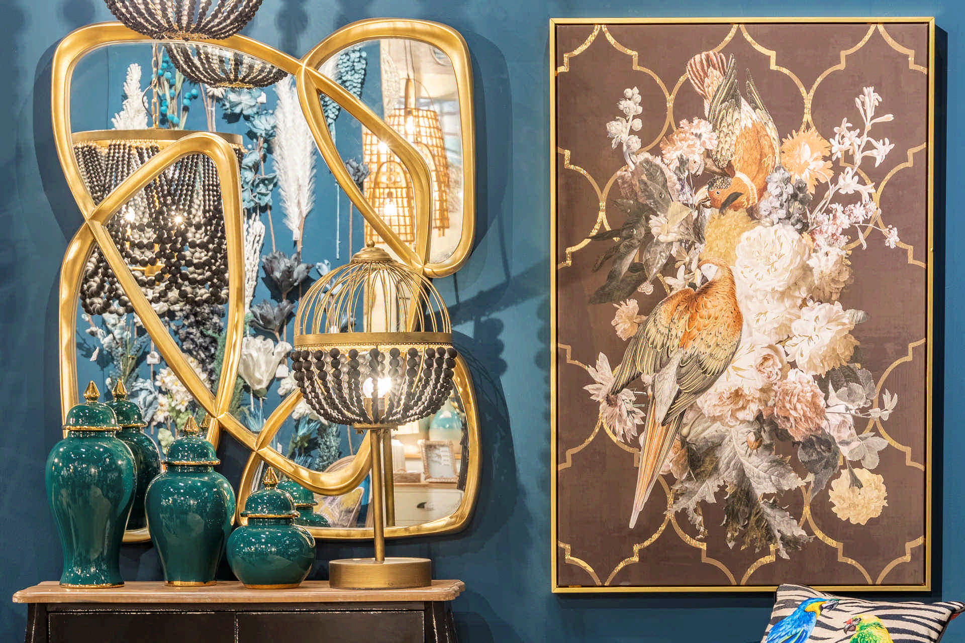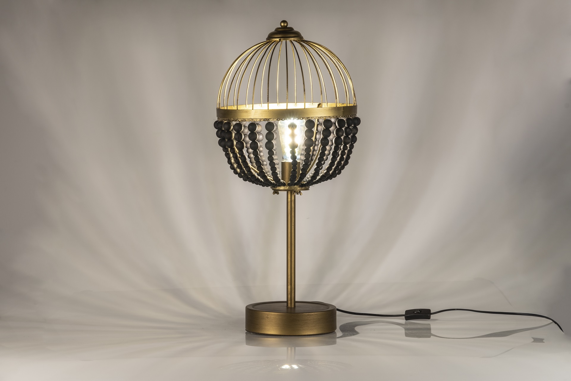LAMPARA SOBREMESA BOLAS METAL MADERA 32x32x70 CM