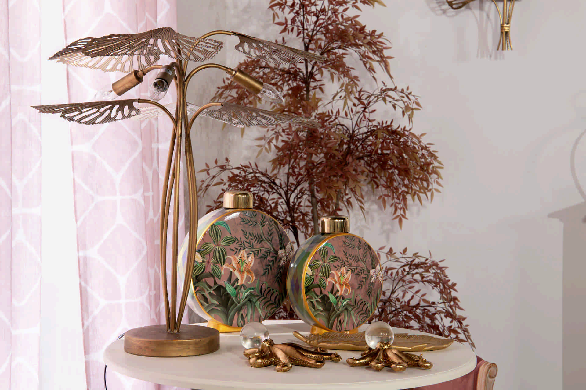 LAMPARA SOBREMESA METAL DORADA 68x68x67 CM