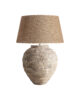 Diseño provenzal reinterpretado. Cerámica en tono crema y pantalla de algodón para ambientes que celebran la simplicidad elegante y el confort.