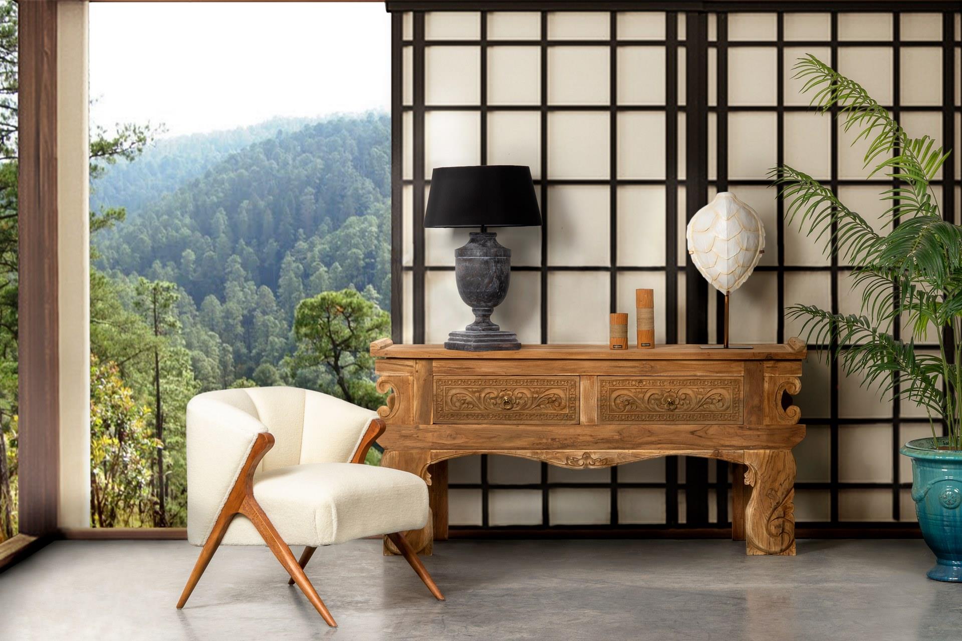 LAMPARA DE SOBREMESA MADERA JADRA 51x51x79 CM
