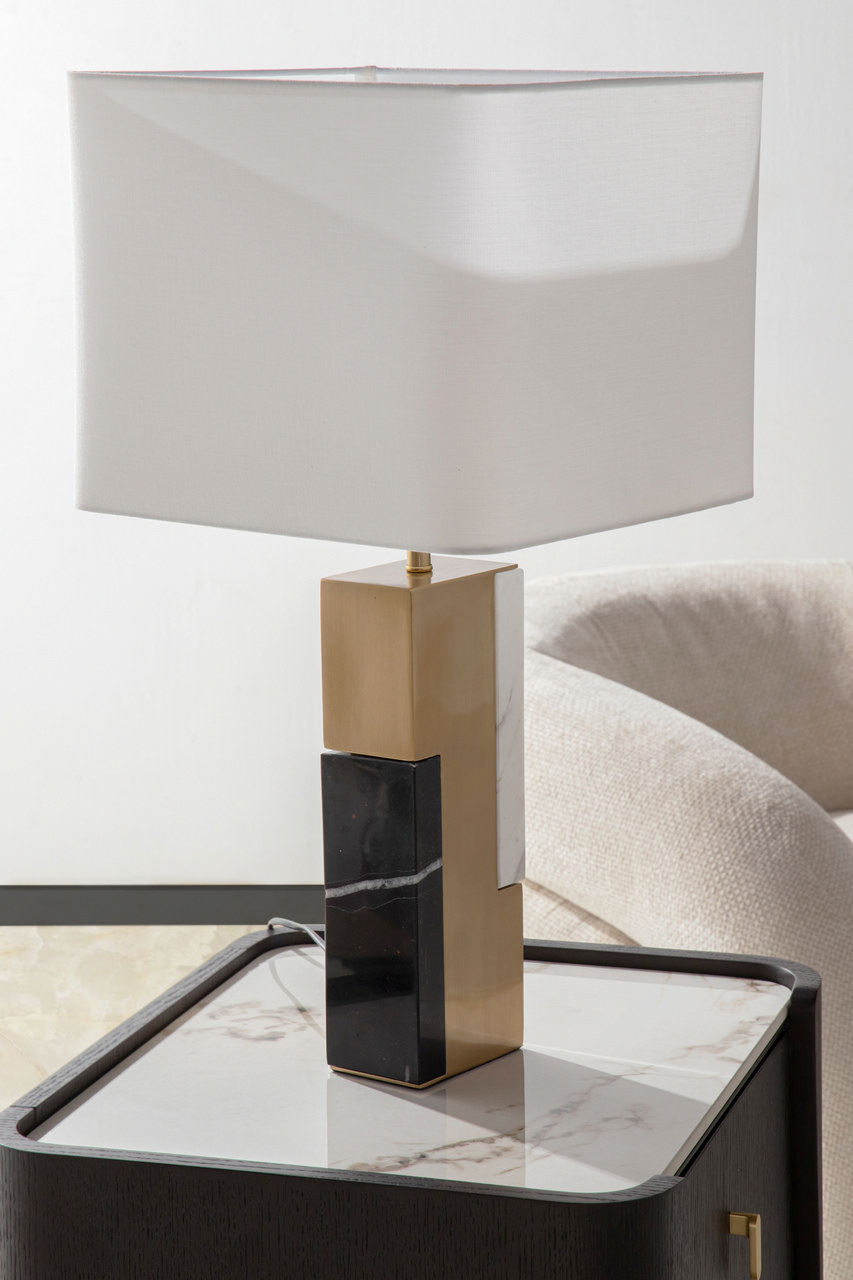 LAMPARA SOBREMESA METAL MARMOL 34x34x66 CM