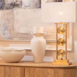 LAMPARA SOBREMESA METAL DORADO BLANCO 36x36x71 CM