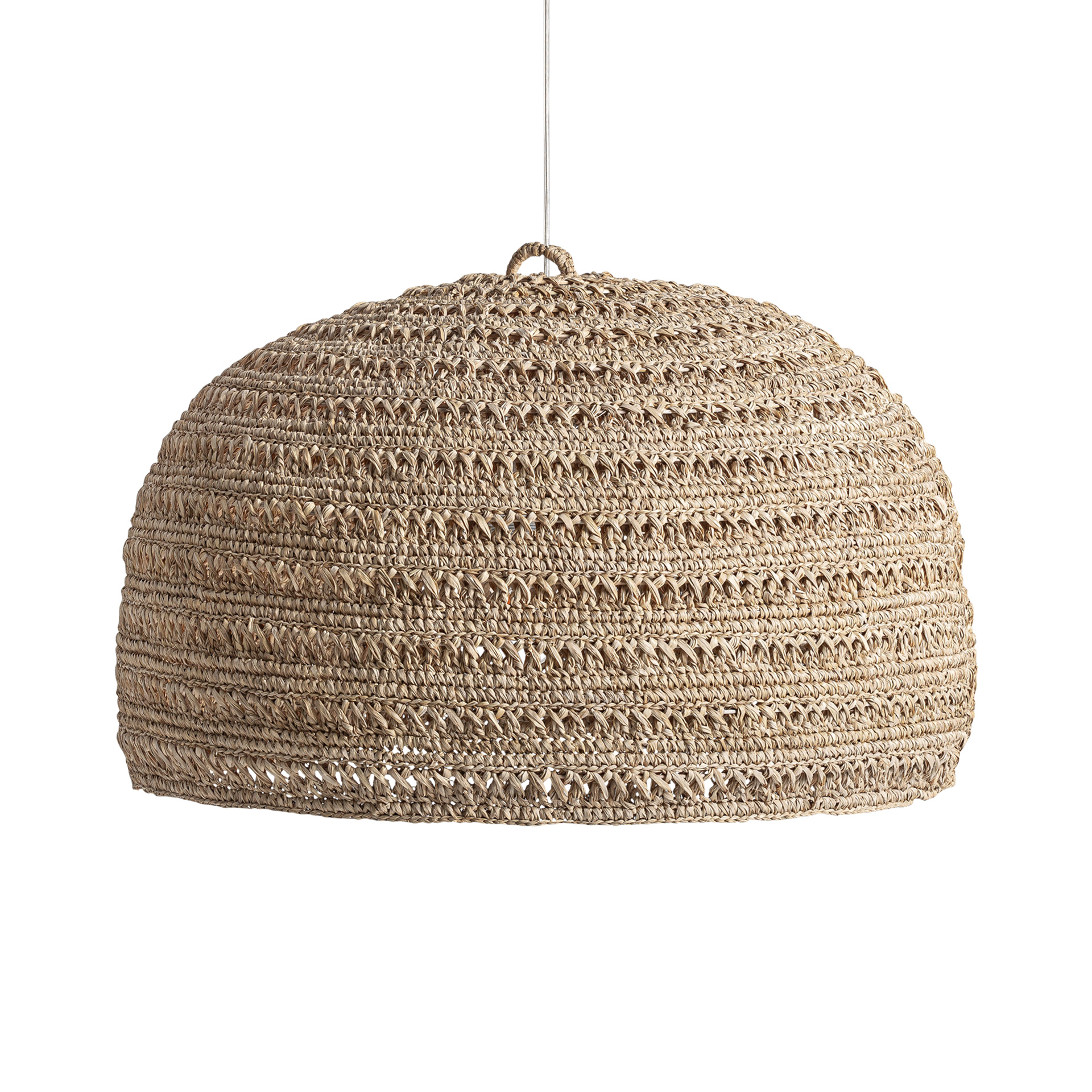 La Lámpara de Colgar Deffe de VICAL mantiene su esencia artesanal con fibra natural marrón y una estética cálida y orgánica.