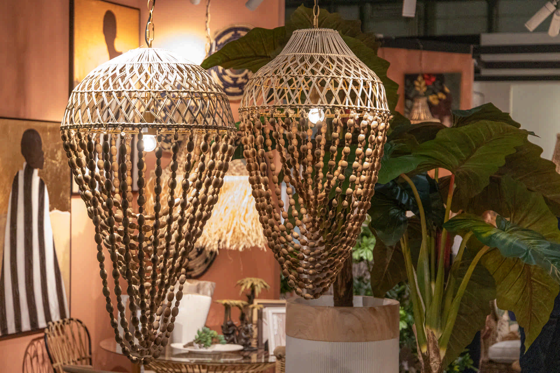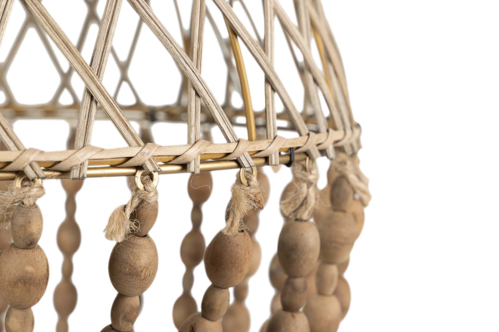 LAMPARA TECHO CADENA BOLAS MADERA METAL 44x44x77CM