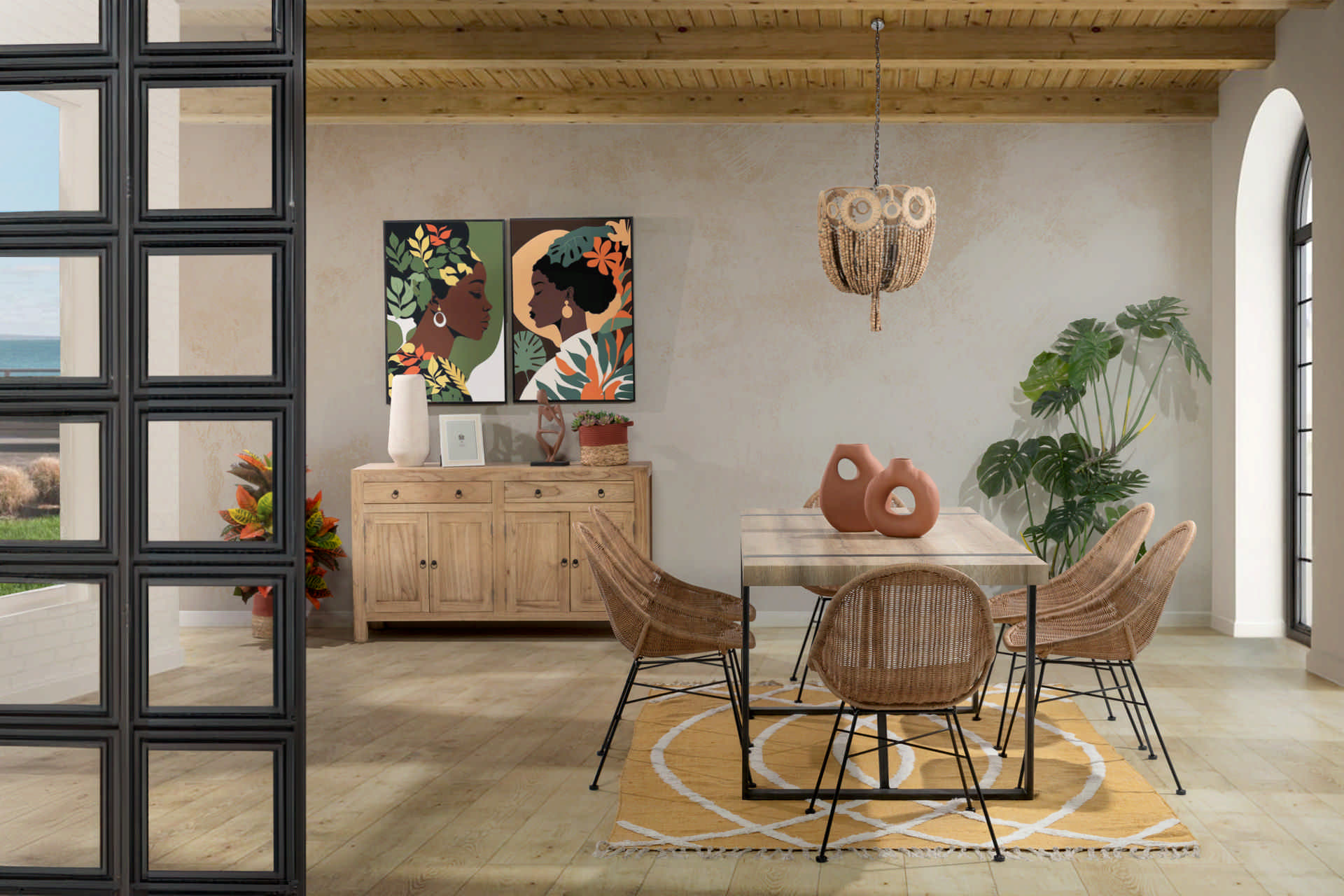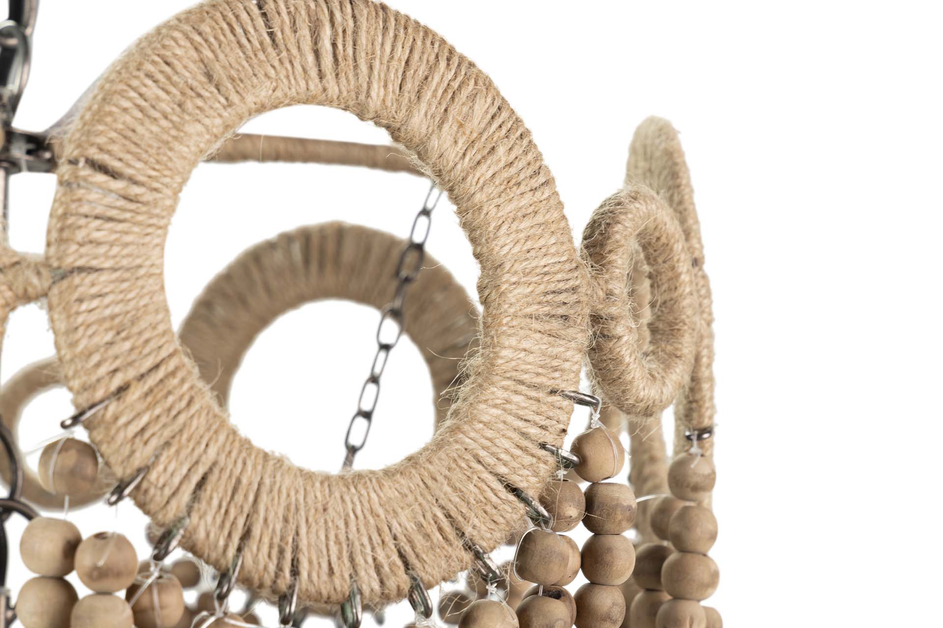 LAMPARA TECHO CADENA BOLAS NATURAL YUTE 46x46x52CM