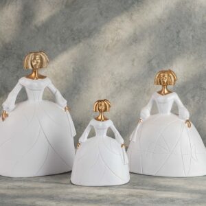 FIGURA MENINA RESINA BLANCA DORADA 22x17x31 CM
