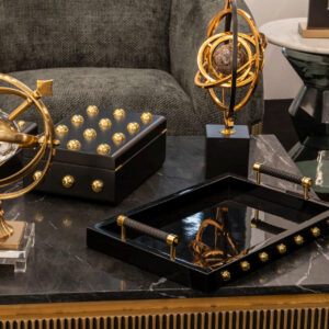BANDEJA MDF VERDE OSCURO DORADO 45x31x9 CM