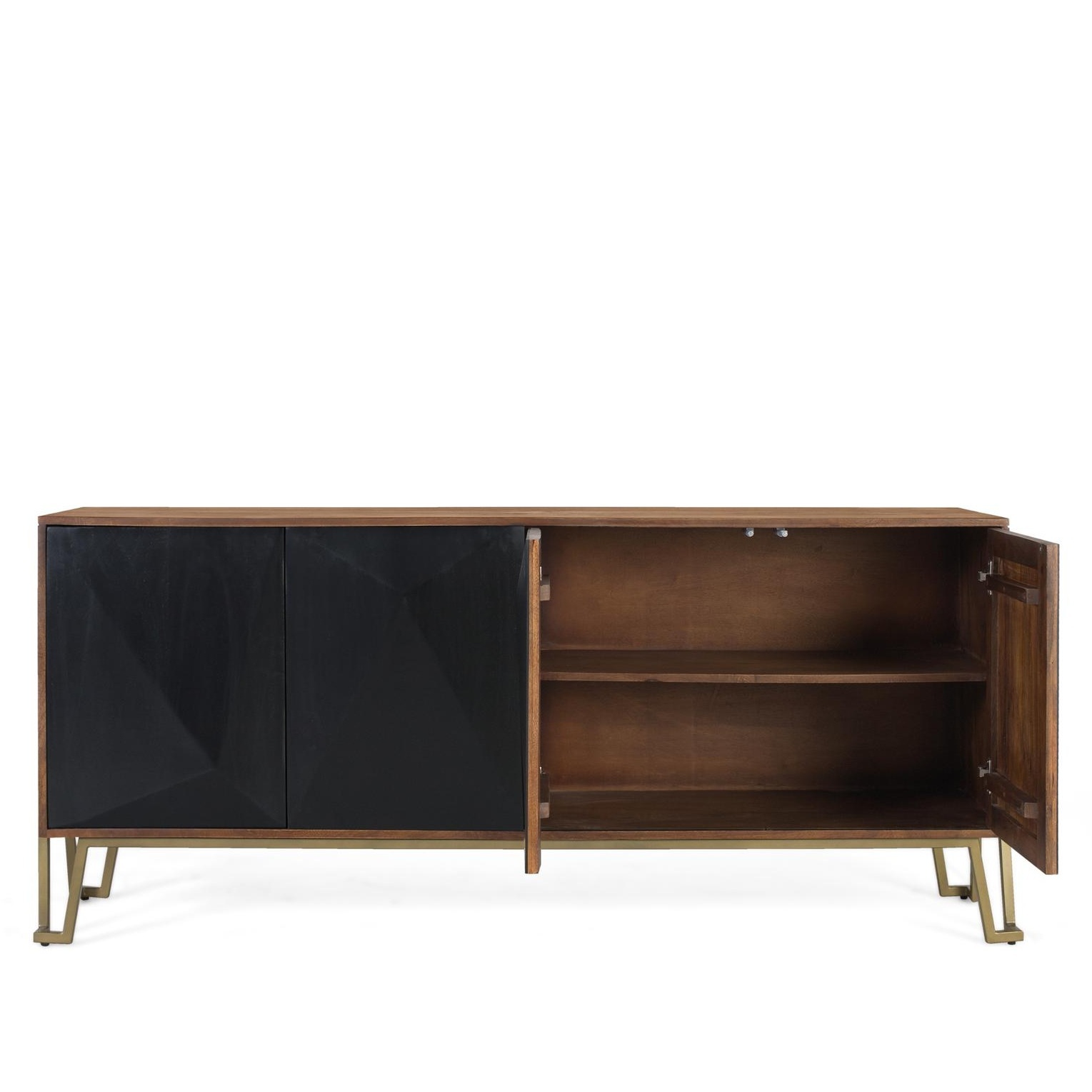El Aparador Dialma no solo destaca por su estética impecable, sino también por sus beneficios funcionales que hacen de su uso una experiencia inigualable. Sus amplias puertas con relieves geométricos en negro mate ofrecen un acceso fácil y organizado a tus objetos más preciados, desde vajillas delicadas hasta artículos decorativos exclusivos.