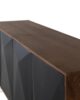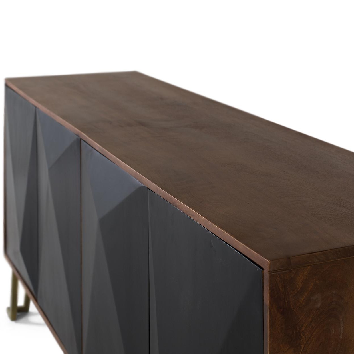 Cierra los ojos e imagina cómo el Aparador Dialma transforma tu espacio: las vetas cálidas y naturales de la madera de mango aportan una sensación acogedora y auténtica, mientras que los relieves geométricos en negro mate evocan modernidad y dinamismo. La superficie suave al tacto invita a deslizar tus manos sobre ella, sintiendo la calidad superior del acabado artesanal.