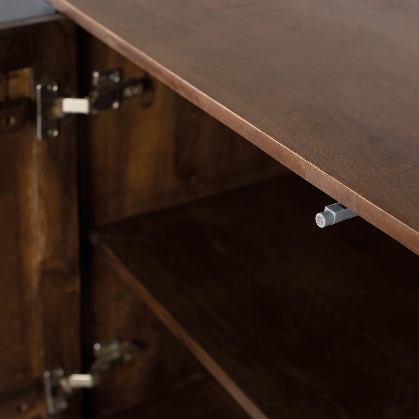 Gracias a su estructura en madera de mango, este mueble garantiza resistencia y estabilidad, permitiéndote disfrutar durante años sin preocuparte por el desgaste. Además, la base en hierro pintado en tono dorado aporta un toque de sofisticación sutil que refleja tu estilo de vida distinguido. La combinación perfecta entre funcionalidad y estética convierte al Aparador Dialma en una inversión inteligente para quienes valoran lo auténtico y lo exclusivo.