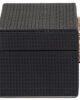 - ¿Es resistente el material? Sí, gracias a su estructura en MDF reforzado y los acabados en cuero PU y zinc, esta caja mantiene su belleza intacta incluso tras un uso prolongado.