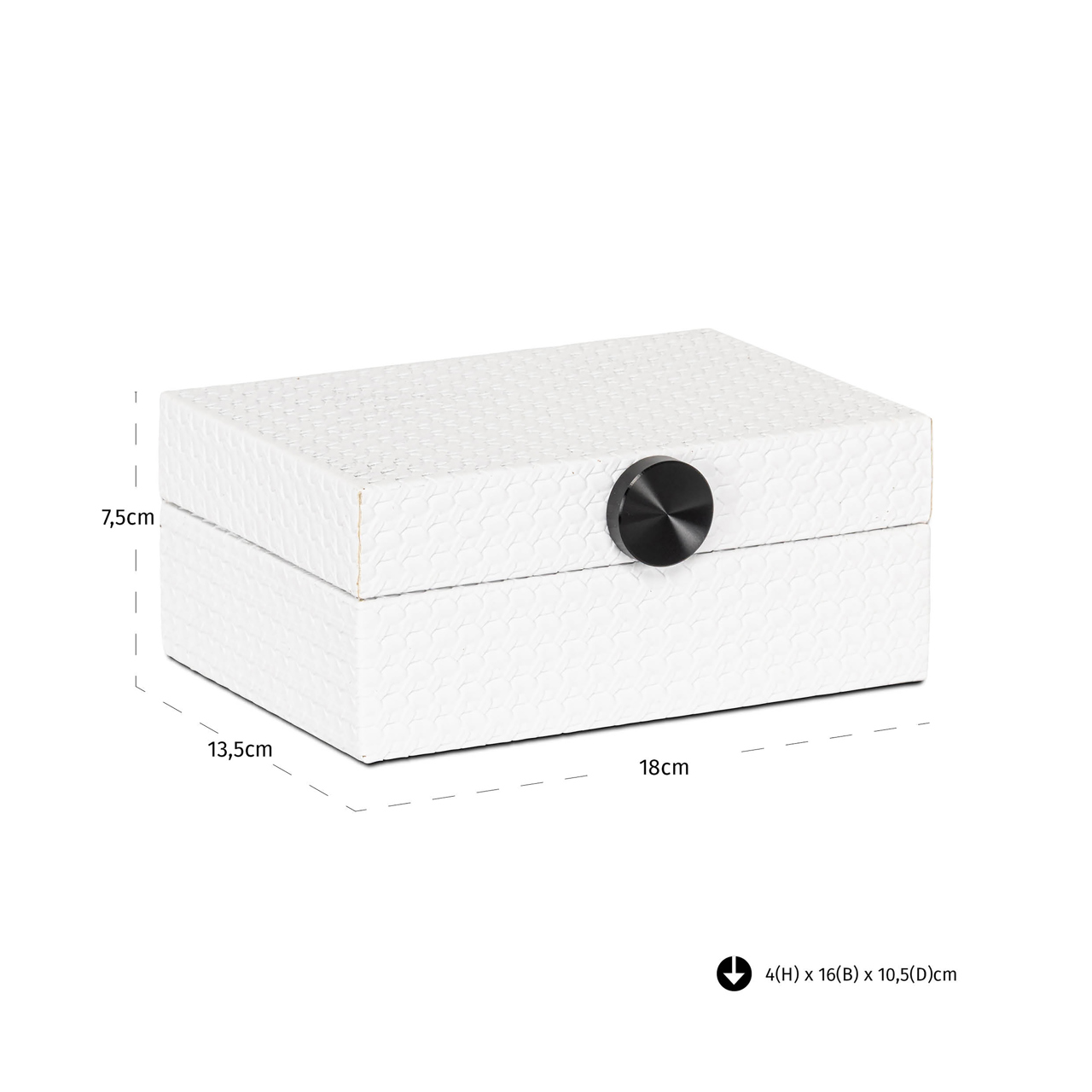 Visualiza esta elegante caja en diferentes escenarios: sobre una mesa auxiliar en el vestidor, acompañando otros muebles blancos o madera clara; dentro de una vitrina decorativa, donde sus líneas puras contrastan con objetos más elaborados; o incluso como pieza central en un rincón dedicado a objetos sentimentales. Su versatilidad permite integrarla armoniosamente en estilos decorativos como minimalismo, clásico contemporáneo o escandinavo.