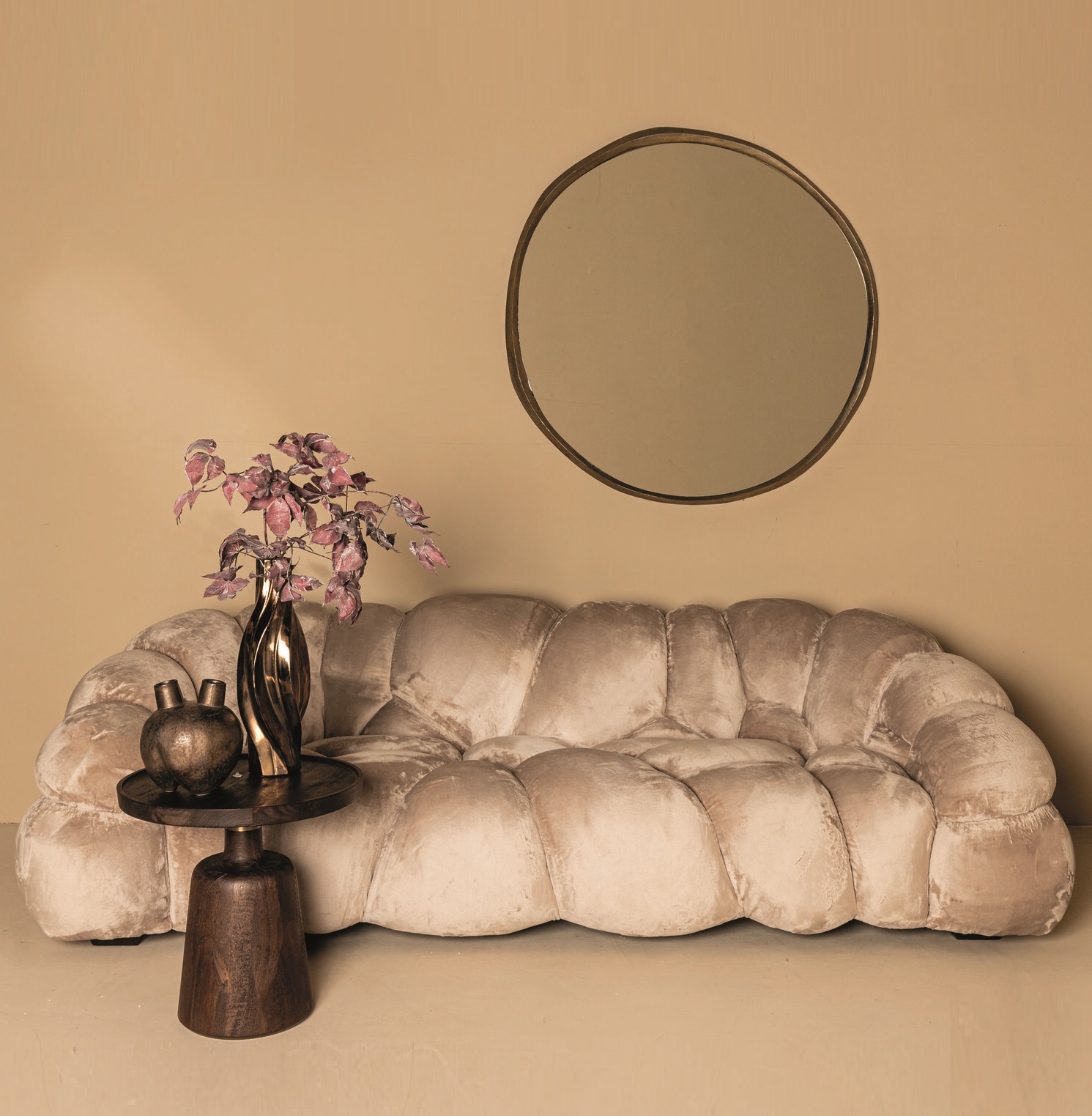 El carácter versátil del Sofá Nube topo lo convierte en protagonista ideal para múltiples estilos decorativos. Desde ambientes minimalistas hasta espacios más clásicos o eclécticos, este sofá aporta sofisticación sin esfuerzo gracias a su paleta neutra y formas envolventes.
