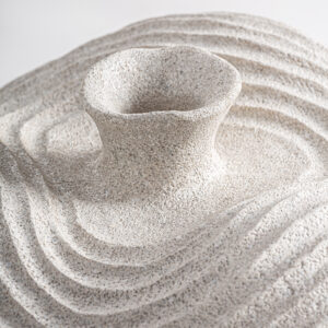 El jarrón Nantua en madera de palma marrón tallada destaca por su acabado artesanal y formas envolventes. Una pieza de VICAL con presencia y estilo.