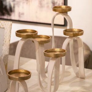 CANDELABRO ALUMINIO BLANCO / DORADO 23x24x31 CM