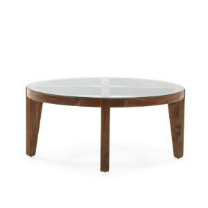 Mesa de Centro 90x90x40 Madera de Teca/Cristal — Natural/Transparente
