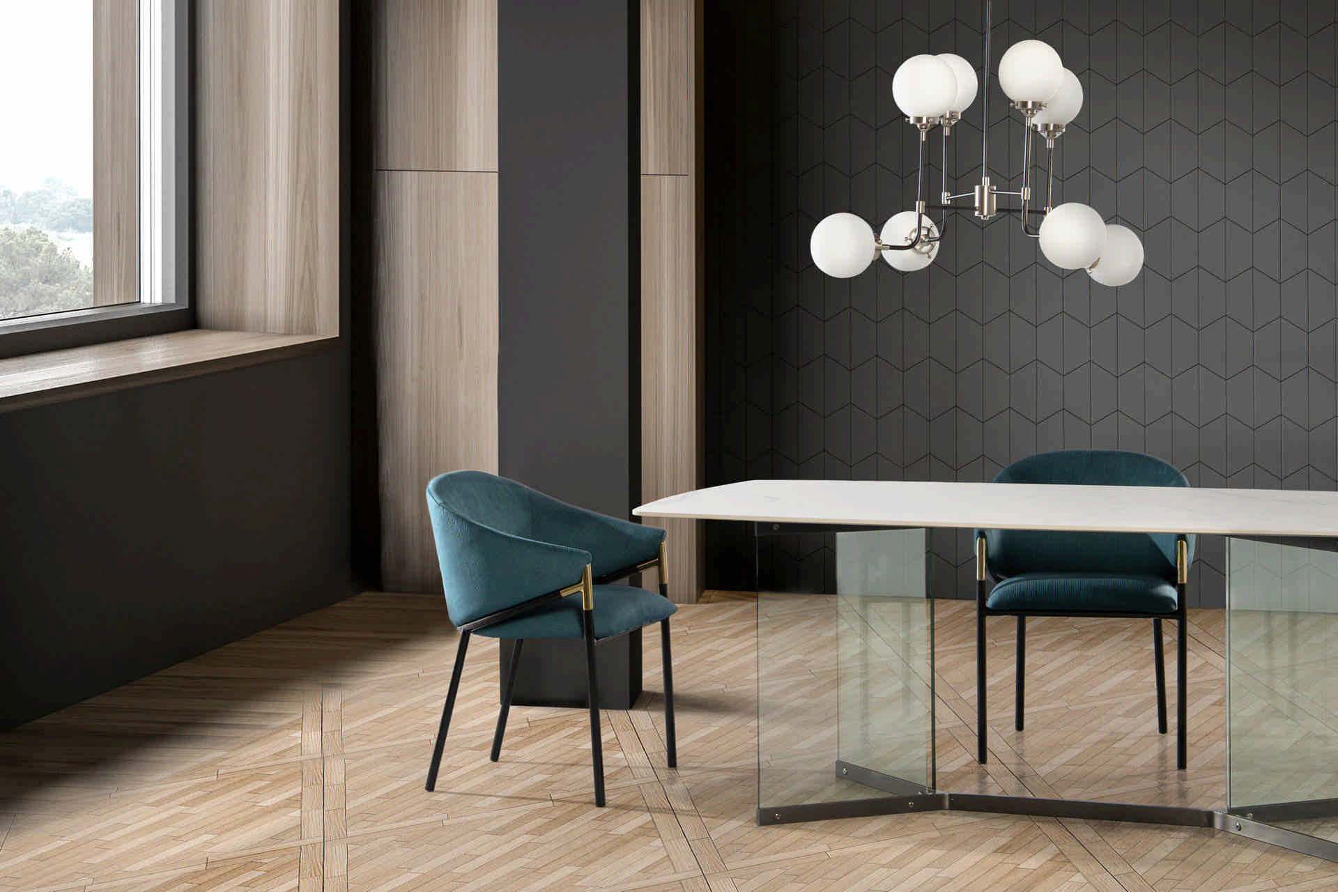 MESA COMEDOR MARMOL CRISTAL NAKIN 200x100x75 CM