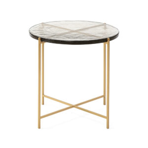 Mesa Auxiliar 51x51x51 Vidrio Rústico/Metal Dorado