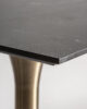 El acero dorado y el porcelánico negro se encuentran en esta mesa bar de líneas esbeltas. Su diseño vertical y sofisticado aporta un aire glamuroso a cualquier espacio social.