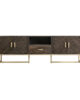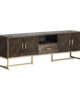 El Mueble Tv KRAJ de VICAL home es la fusión perfecta de elegancia y funcionalidad. Con dimensiones de 200x45x66cm, este mueble no desmontable, fabricado en hierro con detalles en madera de mango, ofrece un contraste espectacular en colores marrón y oro, convirtiendo tu sala en un epicentro de estilo.