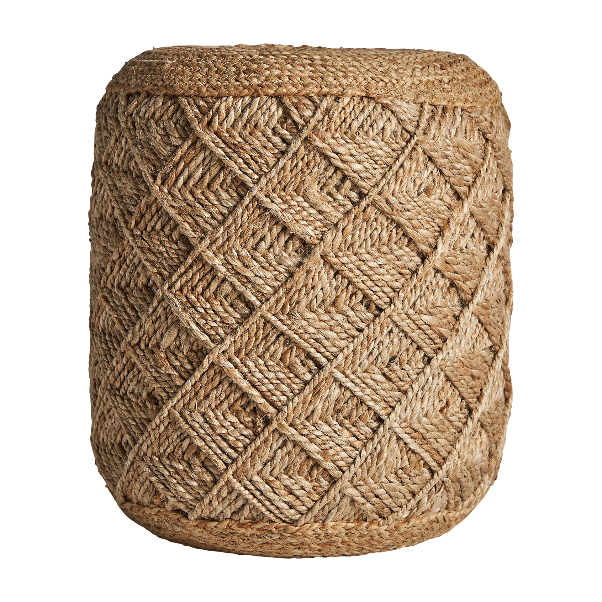 Textura que acoge. Este puff de yute color marrón, con diseño trenzado y estilo vintage, es perfecto como asiento auxiliar o punto de apoyo en cualquier rincón con personalidad y naturalidad.