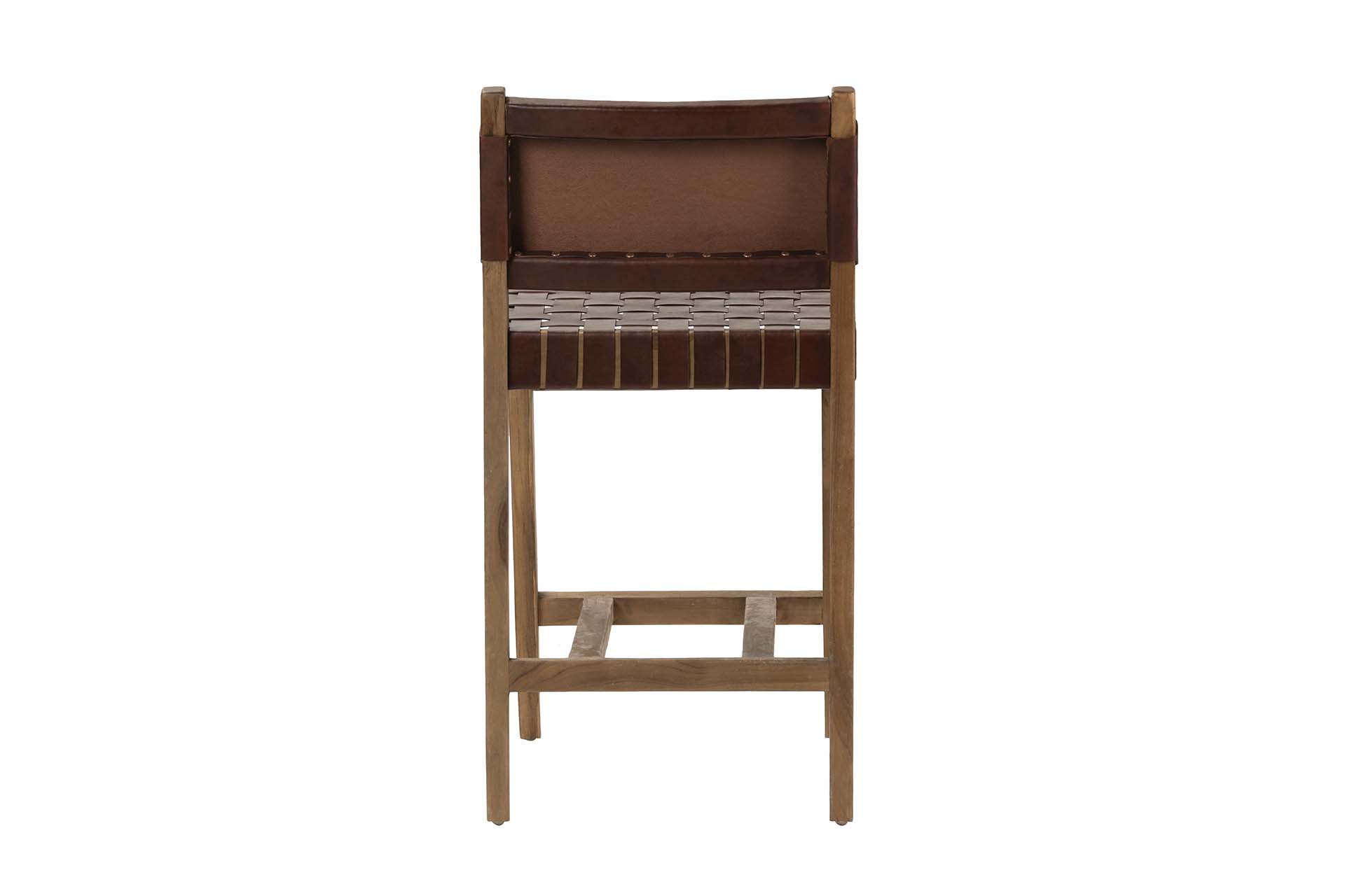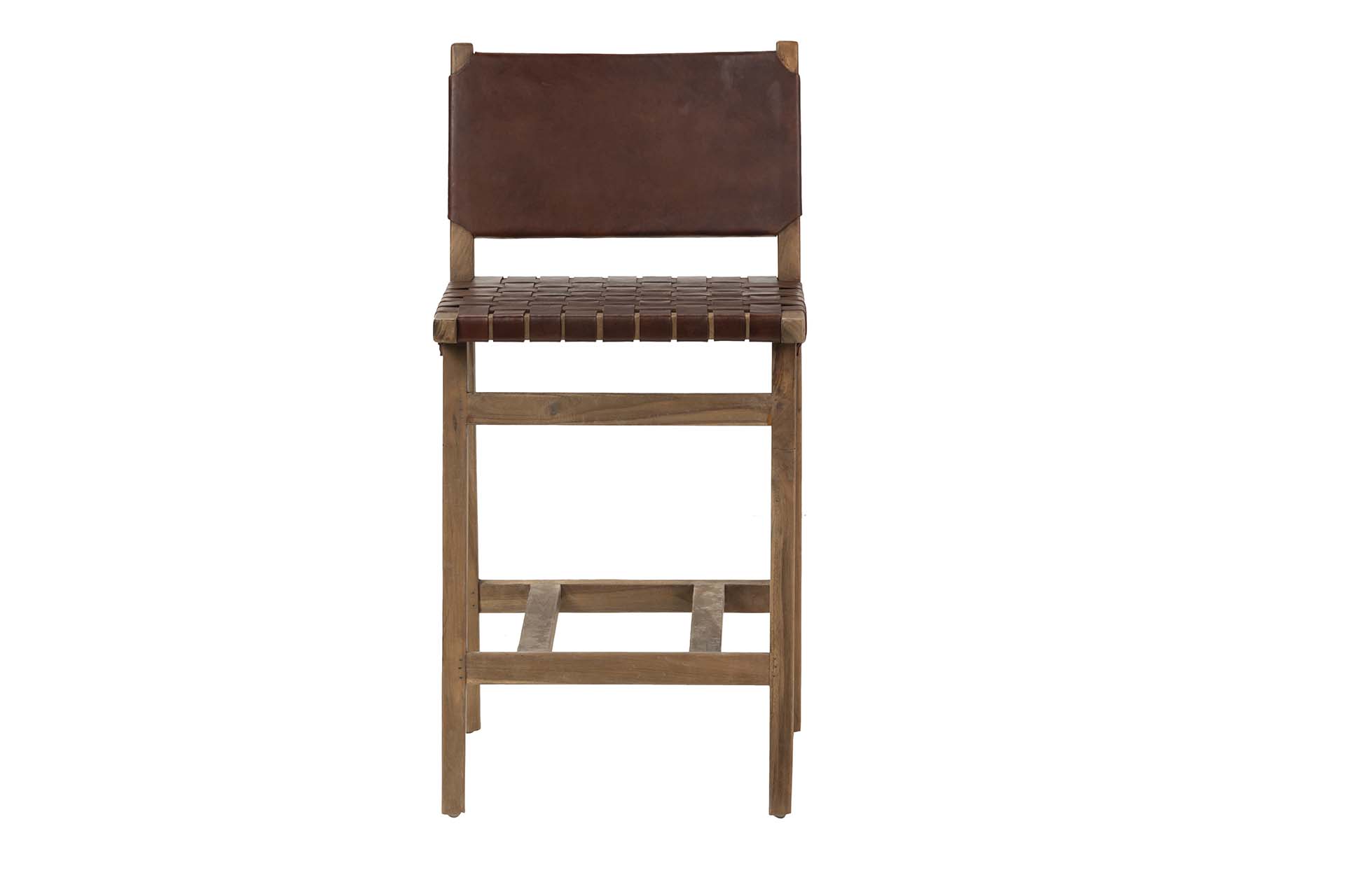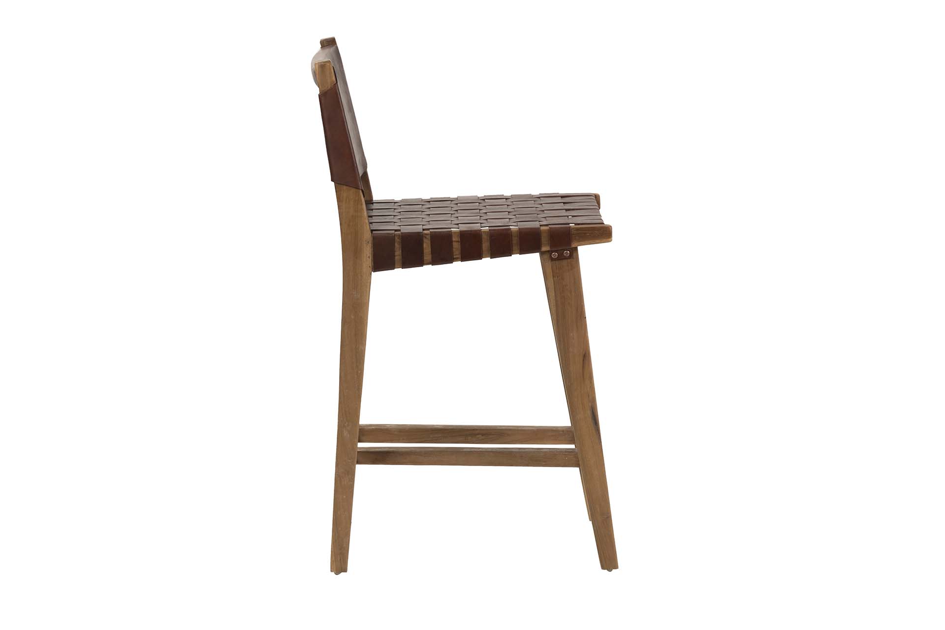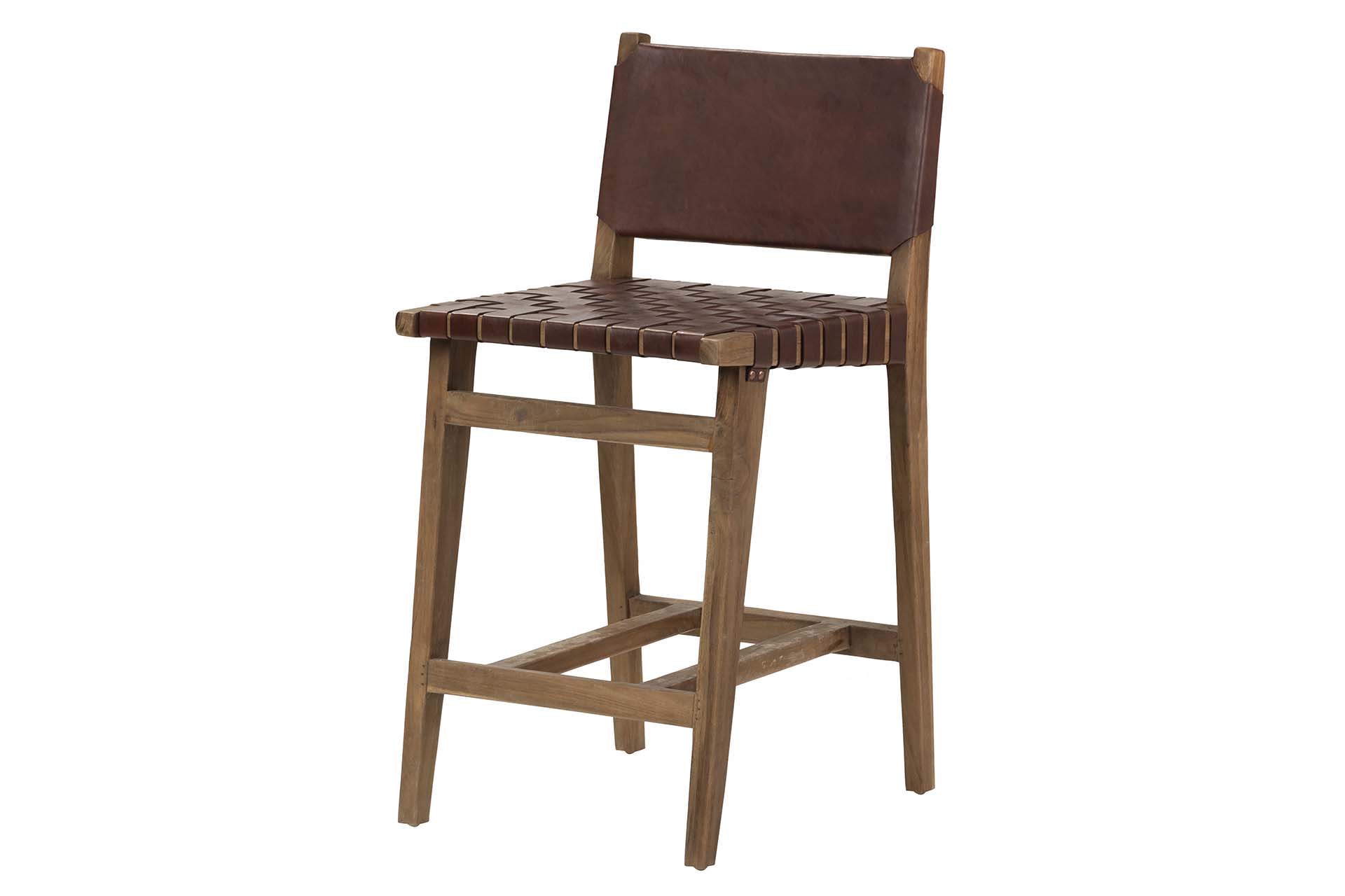 TABURETE MADERA TEKA CUERO 46x52x92 CM