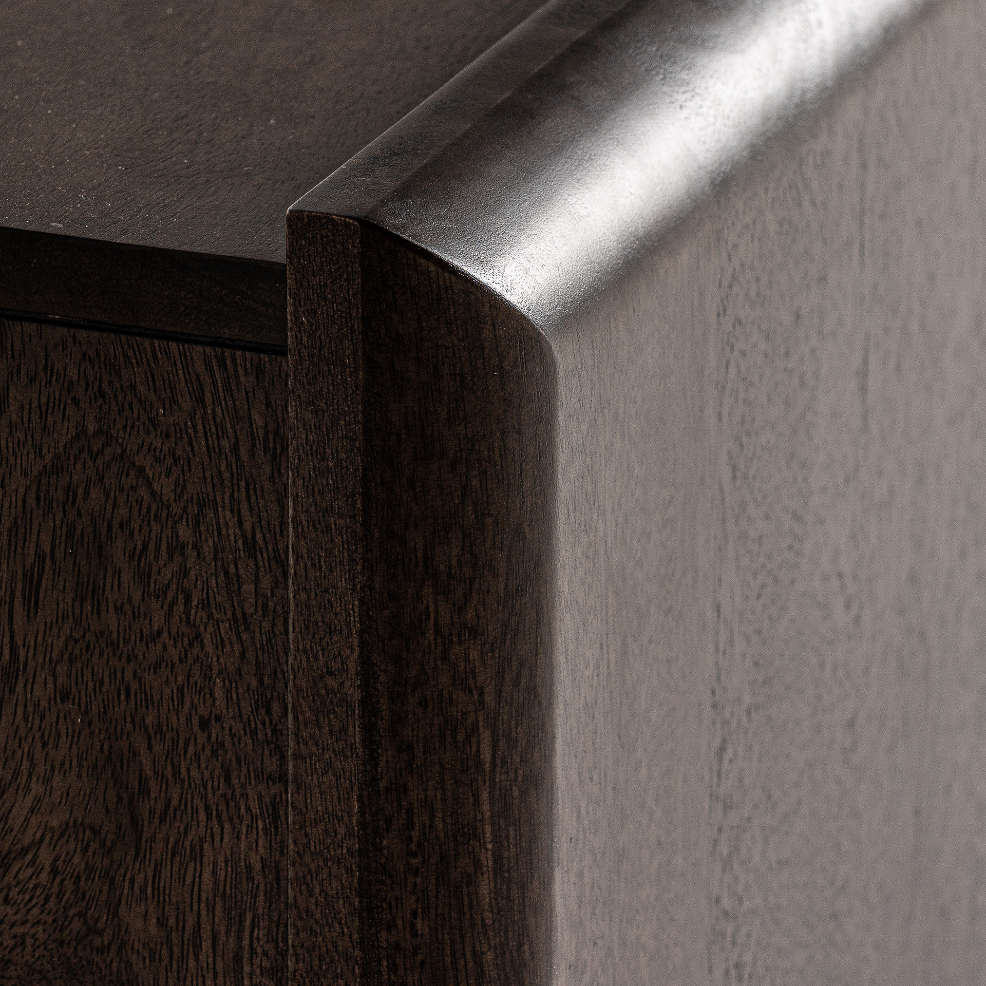Sobriedad con textura. Este mueble de mango marrón de líneas puras y estructura baja encaja en interiores sofisticados y neutros.