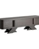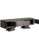 El Mueble TV Rize de VICAL presenta una estética art déco con un diseño geométrico en madera de roble en color negro.