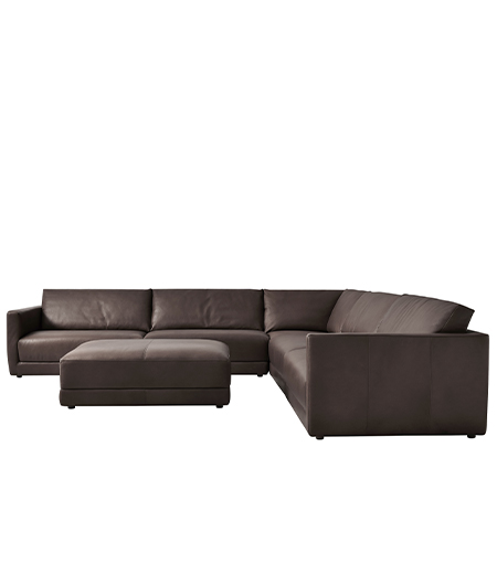 Un generoso módulo esquinero en exclusiva piel flor que combina un confort de lujo con un diseño moderno. Esta pieza forma parte de una serie de sofás modulares y está diseñada para conectar secciones, creando una forma natural y envolvente dentro de su sofá. La suave piel natural aporta un toque sofisticado, mientras que su silueta atemporal permite que el módulo se integre a la perfección tanto en ambientes clásicos como contemporáneos. Las patas extraíbles de madera de fresno aportan estabilidad y un toque refinado. Ideal como pieza esquinera en un sofá modular, ideal para crear un conjunto de asientos flexible y personalizado, priorizando la calidad y el diseño. Color: HT espresso.