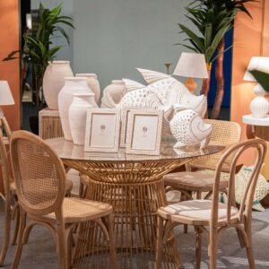 MESA RATAN SINTETICO HIERRO CRISTAL 120x120x75 CM