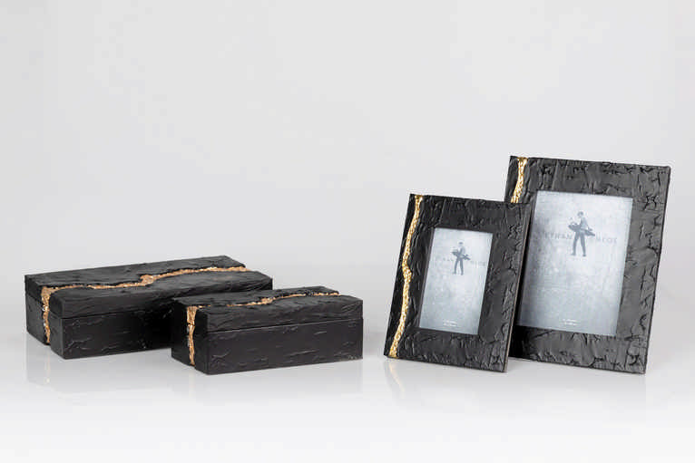 PORTAFOTOS RESINA NEGRO DORADO 15×20 CM