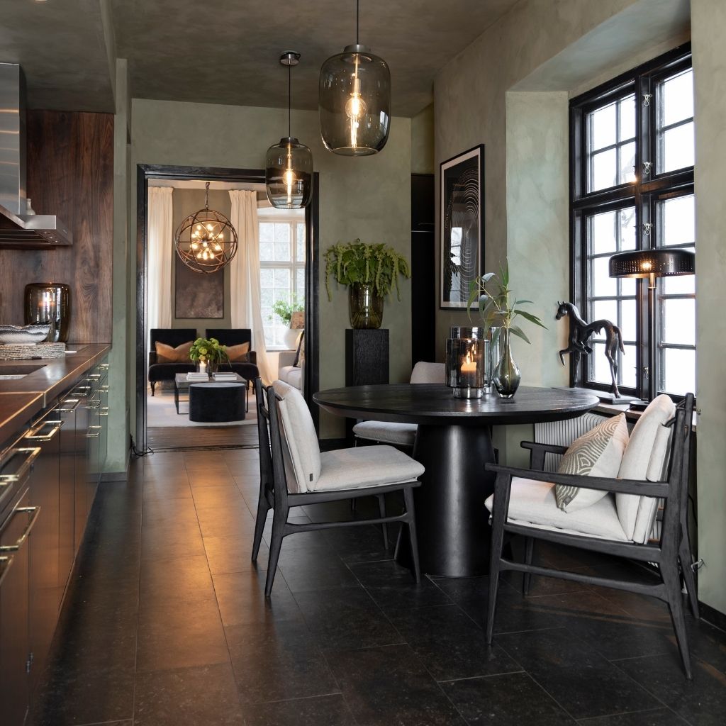 Paige es una sofisticada silla de comedor con reposabrazos, elaborada en madera de haya con un exclusivo acabado en color grafito. Su amplio asiento, combinado con su resistente tapizado, ofrece una excelente comodidad y un soporte duradero, perfecto para largas cenas. Una silla elegante que combina un diseño moderno con detalles clásicos, realzando tanto el comedor como el salón. Color: Tara greige.